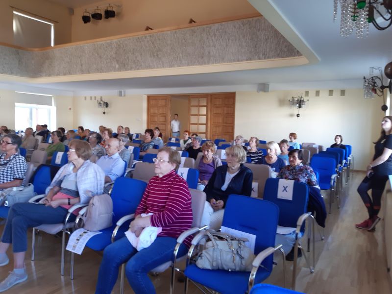UAB Geros savijautos centro „Sanus“ vadovas Darius Makūnas pasidalijo įžvalgomis bei rekomendacijomis, kaip svarbu būti fiziškai aktyviems ir kokie gali būti iššūkiai sulaukus vyresnio amžiaus. Daugiau kaip 80 susirinkusiųjų įsidėmėjo iš tikrųjų paprastą ir vertingą tiesą: ,,Nė vienas vaistas negali pakeisti fizinio aktyvumo, o tinkamai taikomas fizinis aktyvumas gali pakeisti dalį vaistų!“