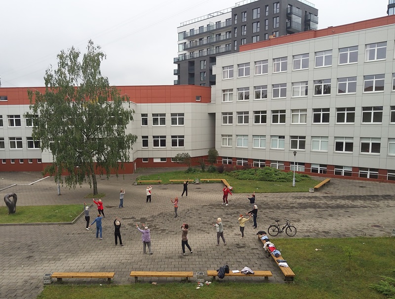 Nesvarbu, kad šie mokslo metai mūsų universitete dar neprasidėjo, bet turime galimybę kiekvieną savaitę pasimankštinti mūsų bendruomenėje. Šiandien (antradienį) 10 val. nedidelis fizinį aktyvumą puoselėjančių klausytojų būrelis aktyviai dalyvavo patyrusios Tai Či ir jogos trenerės Jevgenijos Pavliuk mankštoje. Kadangi esame nuolat sportuojantys bei dalyvaujantys organizuojamose fizinio aktyvumo užsiėmimuose, nesvarbu, koks rudeniškas oras ar dulkiantis lietutis pasitinka mus lauke, svarbu bendravimas, buvimas kartu ir žvali nuotaika po užsiėmimų. Organizmui naudinga tik įprasta fizinė mankšta. Aktyvi veikla turi būti paprasta, maloni, lengvai prieinama, atitikti individualius asmeninius poreikius ir nesukelti papildomos įtampos ar streso.