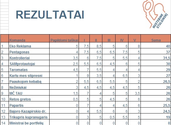 Kaip besistengė mūsų komanda, aukščiau 8 vietos (iš 20 komandų) taip ir nepakilo. Šiame ture negalėjo dalyvauti vienas iš komandos lyderių – buvęs Kultūros fakulteto prodekanas Algimantas Petrauskas. Tikriausiai ir tai neprisidėjo, siekiant geresnio rezultato.