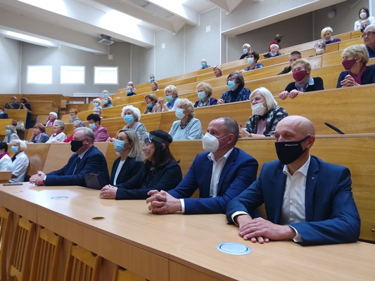 Gal ir ne visai sklandžiai sugiedojome „Gaudeamus igitur“ – mūsų senjorų balsai skambėjo gražiau, įtaigiau, nuoširdžiau, negu amžinojo studentų himno įrašas. Po himno renginio vedėja MČTAU prorektorė Aldona Rėksnienė pristatė į universiteto šventę atvykusius garbius svečius – pas mus apsilankė Lietuvos Respublikos Vyriausybės kancleris Algirdas Stončaitis ir Ministro Pirmininko patarėja Ieva Gervinskaitė, VĮ Registrų centro generalinis direktorius Saulius Urbanavičius bei šios įmonės finansų ir administravimo direktorius Sergejus Ignatjevas, VšĮ Tarptautinės socialinės akademijos direktorė Angelė Bajorienė.