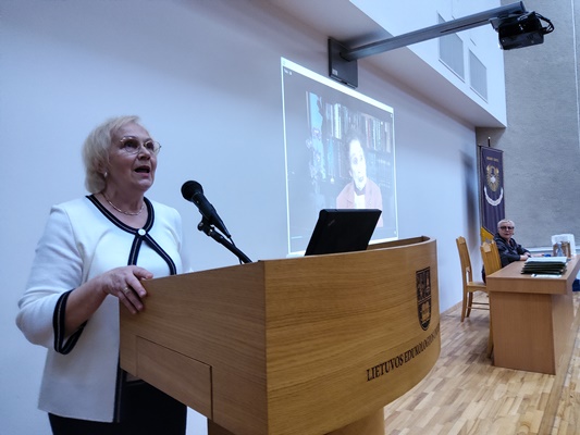 Rektorė pasveikino naujus MČTAU garbės narius, šiais mokslo metais atsistatydinusius dekanus – Aldoną Mikulionienę, Rimantą Kazimierą Radžiūną, Augustą Vismantą ir palinkėjo jiems išlikti aktyviais bendruomenės nariais.