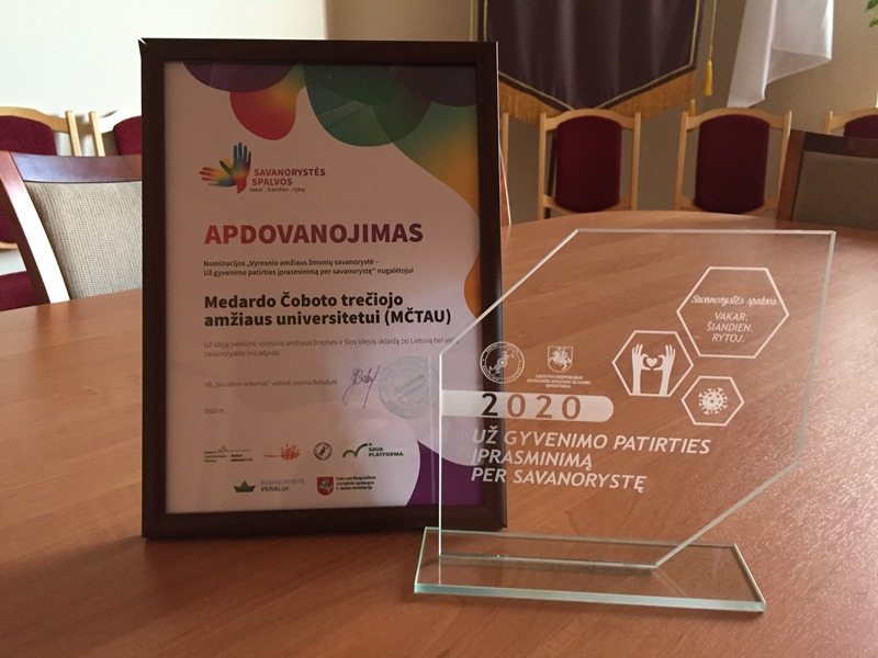 Gruodžio 5 dieną minima Tarptautinė savanorių diena. Dar 1985 metais JTO pasiūlė pažymėti šią datą, siekiant supažindinti visuomenę su įvairiomis savanorystę skatinančiomis iniciatyvomis bei kviesti žmones dalyvauti savanoriškoje veikloje visuomenės labui. Pažymint šią dieną Lietuvoje, įvertinti ir apdovanoti labiausiai savanorystės srityje 2020 m. pasižymėję, nuveikę bei įkvėpimu kitiems tapę asmenys ir organizacijos. Tarp apdovanotųjų – ir Medardo Čoboto trečiojo amžiaus universitetas. Aktyvių piliečių fondo apdovanojimas universitetui suteiktas „Už gyvenimo patirties įprasminimą per savanorystę“.