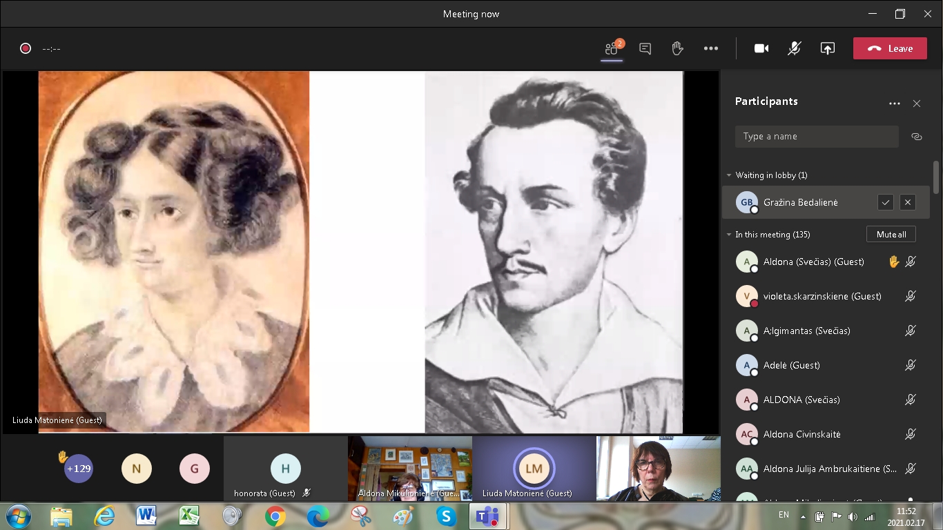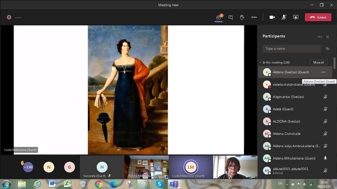Vasario 17 d. pakvietėme į pirmąją atvirą videokonferenciją, kurią maloniai sutiko parengti mūsų Garbės dekanė Aldona Mikulionienė. Konferencija buvo skirta žymioms moterims kartu pažymint Meilės dieną, Vasario 16-ają ir Tarptautinę gido dieną. Konferencijoje dalyvavusios viešnios – nusipelniusios gidės Lina Čebatorienė ir Liuda Matonienė kartu su savo buvusia mokytoja Aldona Mikulioniene suteikė galimybę išgirsti nepakartojamų istorijų apie žymias Lietuvos moteris, jų vaidmenį istorijoje ir kultūriniame gyvenime. Pamatėme šių moterų ir jų mylėtų vyrų nuotraukų, senovinių atvirukų apie meilę, vietų ir paminklų, susijusių su pasakojamomis istorijomis, sužinojome, kaip ekskursijos tampa knygomis, o knygos – ekskursijomis.