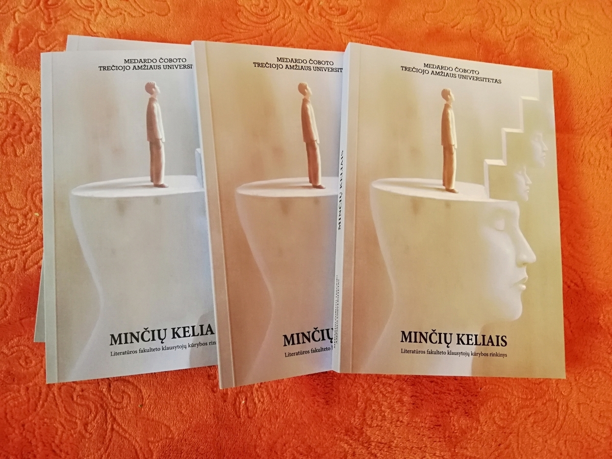 Nors karantinas apribojo fizines galimybes, MČTAU veikla tęsiasi – minčių keliams užverti vartų neįmanoma, o su universiteto klausytojų išradingumu neišgali rungtyniauti jokie virusai! Tai patvirtina mūsų fakulteto klausytojų paruoštas ir neseniai dienos šviesą išvydęs kūrybos leidinys „Minčių keliais“. Tais keliais drauge su dvidešimt šešiais autoriais galima klajoti istoriniais vingiais, kartu su jais patirti ir išgyventi tremtį, pokario sunkumus, grožėtis tėviškės gamta, suprasti moters dalią ir jos stiprybę, pažvelgti net į vyro mylinčią širdį! Minčių keliai moko džiaugtis kiekviena akimirka, skleisti giedrą sielose, mylėti žmogų ir pasaulį. Tie keliai veda per tikrą, išjaustą, kartais ir išverktą gyvenimą, o juose beklaidžiodamas per 264 puslapius, gali netyčia atrasti ir suvokti save ne tik akimirkoje, bet ir amžinybėje, gali pasijusti su visais kartu bei vienumoje...