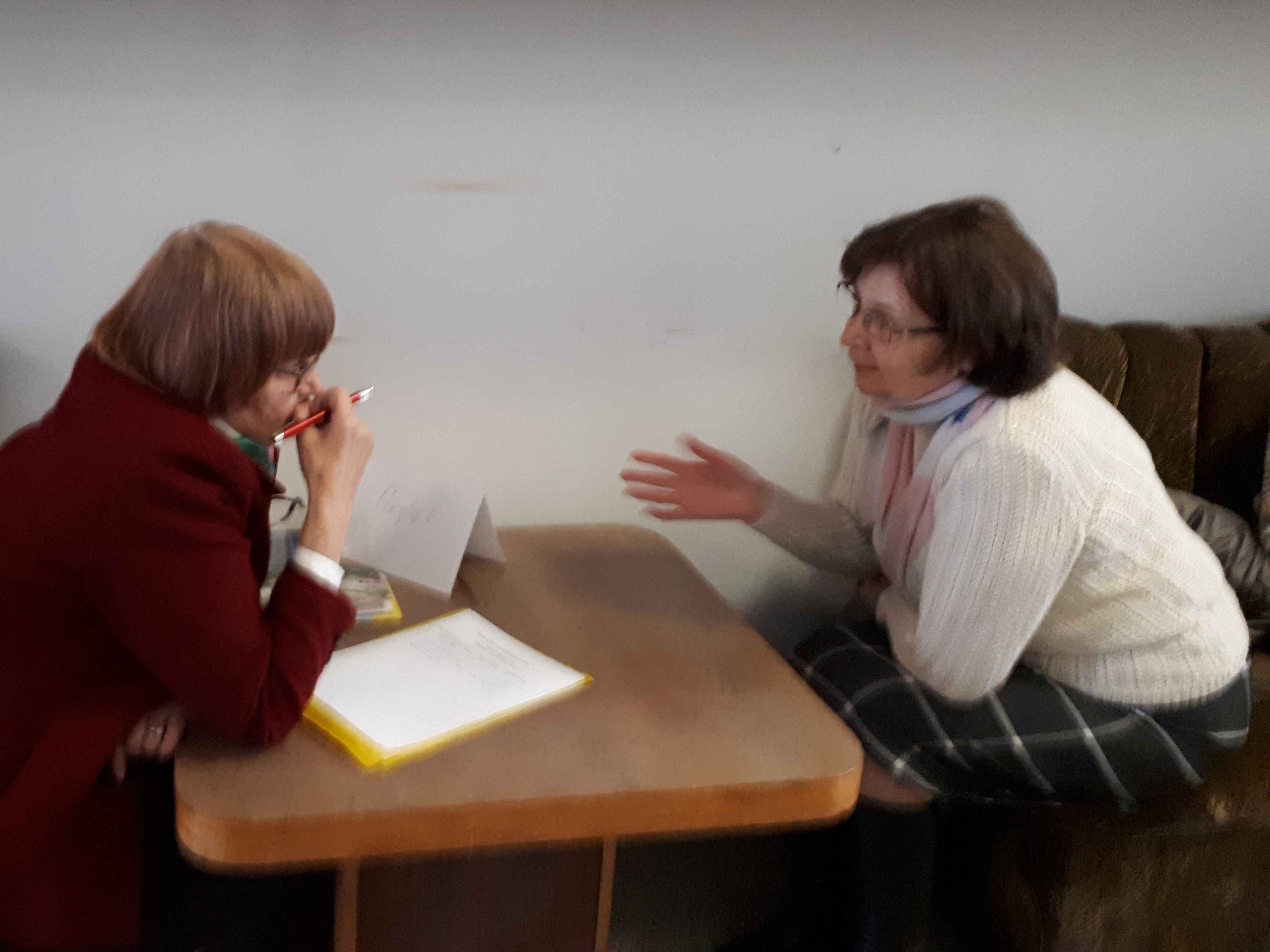 Anglų kalbos dėstytoja Valerija Norušaitienė su kiekvienu stojančiuoju trumpai pasikalbėdavo angliškai, susipažindavo, įvertindavo tarimą, kalbos taisyklingumą, žodyną. Iš pirmųjų septynių testuotų tik vienas arba du galės mokytis pažengusiųjų grupėse, trims teks pradėti mokyti kalbos pradmenų. „Mokytis anglų kalbos senjorai dažniausiai ateina todėl, kad nori susikalbėti su užsienyje gyvenančiais žentais, marčiomis, anūkais, nori gebėti susirašinėti su jais, perskaityti jų laiškus, o nuvykę jų aplankyti nori ne tik juos išklausyti, bet ir patys pasipasakoti. Kai kurie nori geriau jaustis kelionėse. Treti ateina norėdami lavinti atmintį ir pabendrauti. Visų motyvai panašūs“, – pasakojo dėstytoja. Praėjusiais mokslo metais V. Norušaitienės grupės dirbo kontaktiniu būdu, šiais mokslo metais irgi tikimasi gyvų užsiėmimų.
