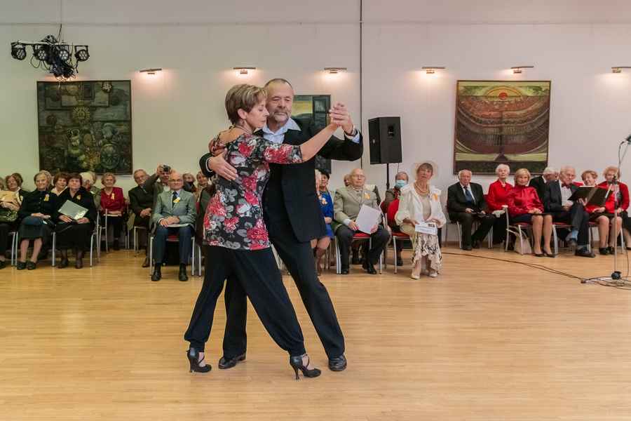 Turizmo fakulteto klausytojai paruošė malonų siurprizą garbiems senjorams. Ovidijus ir Audronė Gabrėnai padovanojo du argentinietiškus tango, o Elena Dobrovolskienė ir Vilius Šaduikis - lietuvišką šokį.