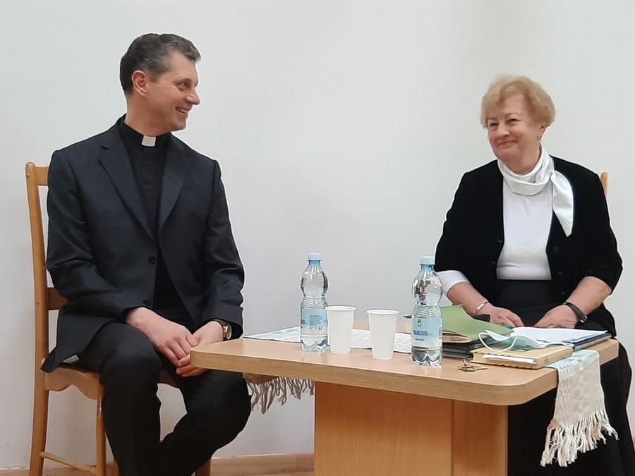 Meninio ugdymo fakulteto Skaitovų grupės vadovė N. Gradauskienė padėkojo kunigui R. Doveikai už nuoširdžią ir turiningą gerumo pamoką.