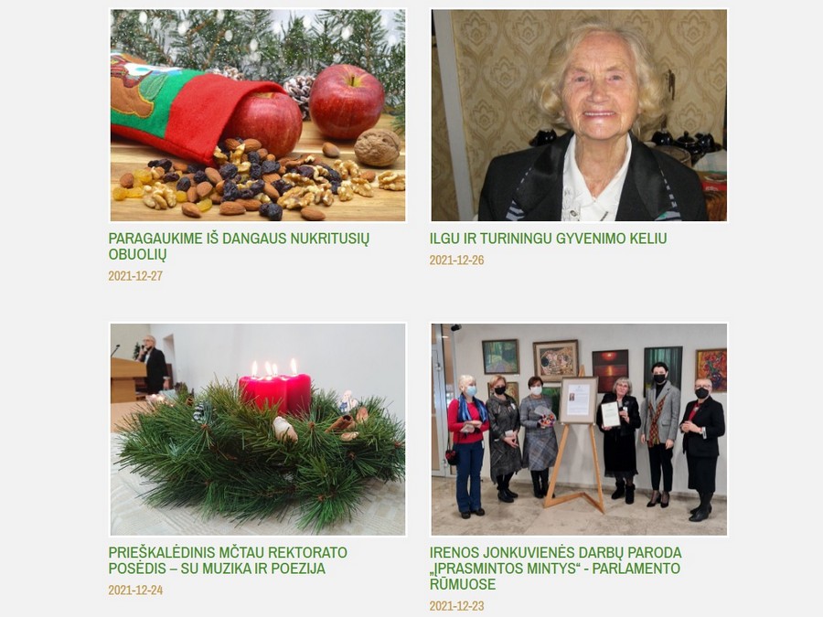 Tarp populiariausių 2021 metų publikacijų: „Būkite palaimintos, mamos!“, kai Motinos dienos proga senjorus sveikino Vilniaus Švč. Mergelės Marijos Nekaltojo Prasidėjimo bažnyčios klebonas, Medardo Čoboto TAU kapelionas Vytautas Rapalis; „MČTAU rektorei Vilniaus rotušėje iškilmingai įteikta Šv. Kristoforo statulėlė“; „Būkime aktyvūs ir sveiki!“, Viktorijos Montvilienės, MČTAU Sveikos gyvensenos fakulteto dekanės, patarimai; „Nupinta trečioji respublikinė senjorų šokių pynė“; „MČTAU mokslo metų pradžios šventėje lankėsi šalies prezidentas“.